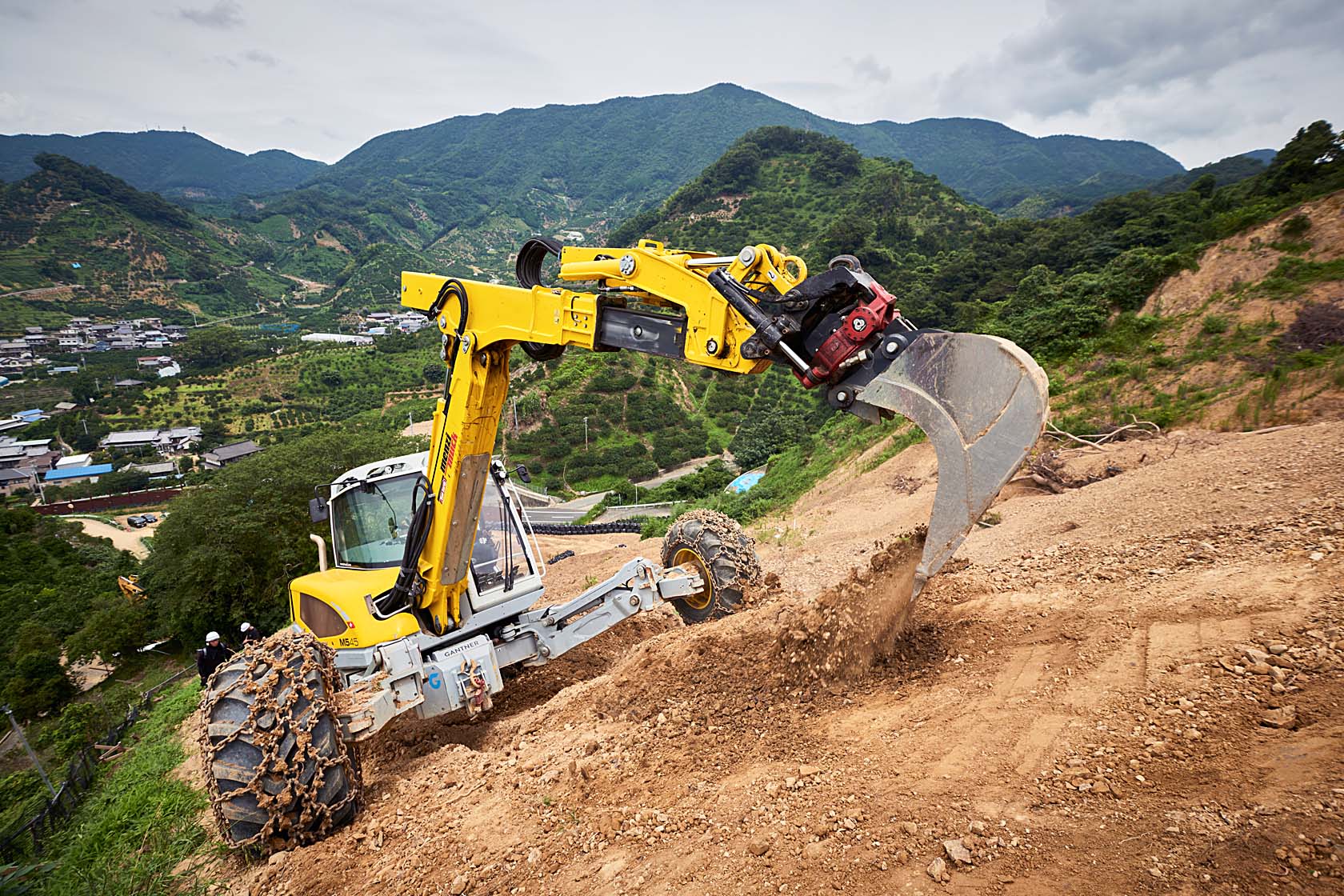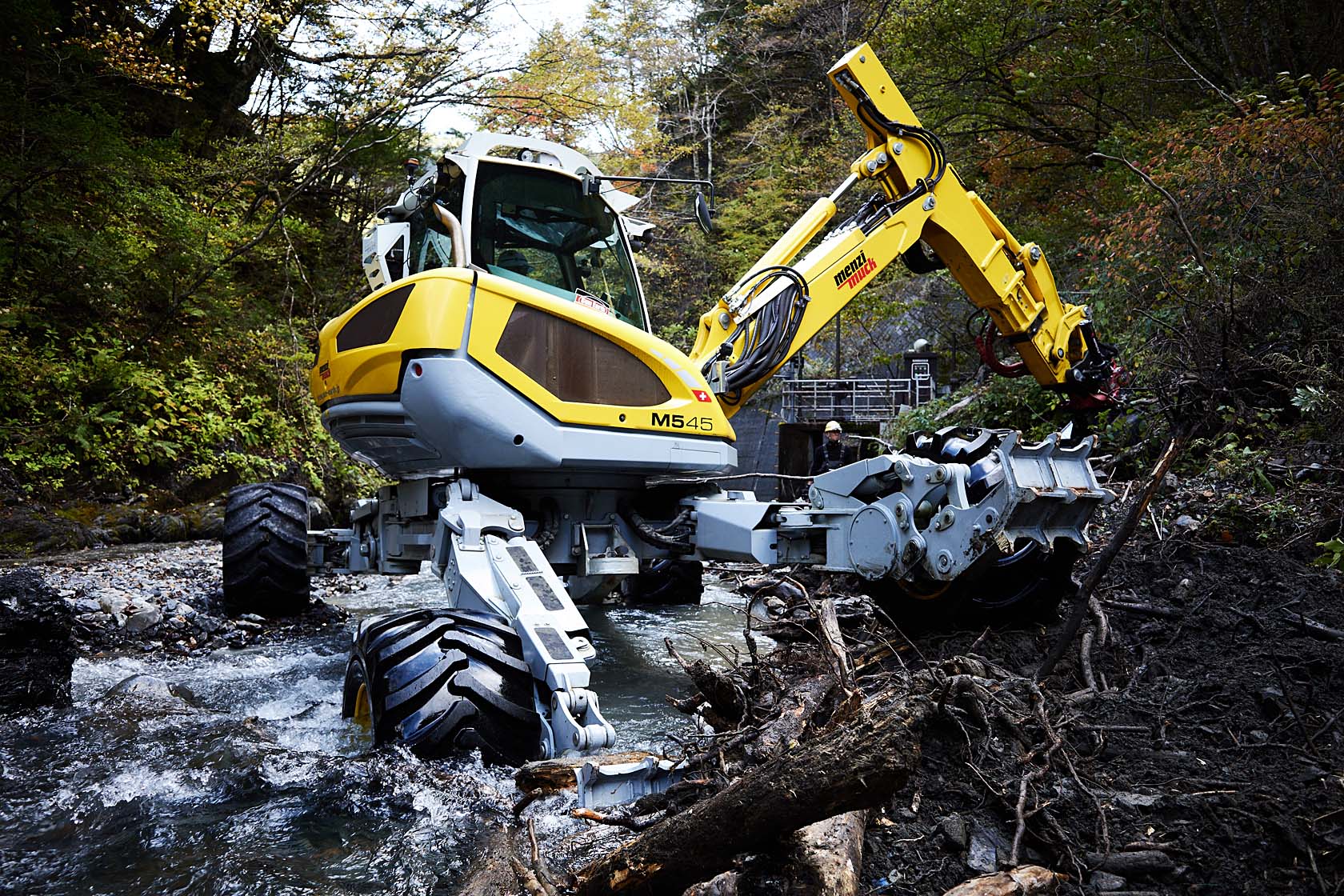従来の重機では入ることができなかった難所での作業を可能にするほか、様々なアタッチメントを用いることで土木、林業、河川・護岸、災害復旧など、広範な用途に対応します。